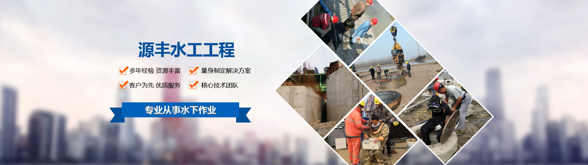 ——專(zhuān)業(yè)從事水下作業(yè)的股份制企業(yè)他們也在搜:堵漏施工 / 鋼板樁施工 / 模袋混凝土施工 / 水下施工 / 沉井施工 / 過(guò)河管道施工 /